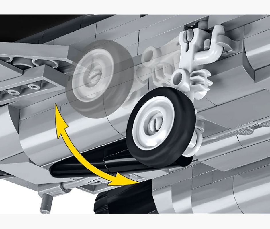 The COBI F-14 TOMCAT is a unique aircraft model released under the original TOP GUN™ and NORTHROP GRUMMAN license. Legendary film pilot Pete "Maverick" Mitchell and his partner "Goose" fly just such a two-seater. Relive the excitement of TOP GUN by building your own F-14 in 1:48 scale. The model was faithfully reproduced from 825 bricks and includes high-quality prints faithfully reproducing the original markings of the movie aircraft. The model is equipped with movable wings with variable geometry, retractable landing gears and rotating wheels. There is a large arsenal of weapons under the wings. In the cabin you can place both the film aviators, and their seats are even signed (Maverick & Goose)! The figures accurately recreate the appearances of the film's heroes and are equipped with characteristic helmets and oxygen masks. The set also includes an elegant display stand and a plaque containing the name of the plane and the logo of the film. This exclusive licensed set is definitely a great gift idea for every movie, aviation and military fan, regardless of age. The plane also looks perfect in an elegant study or in a teenager's room.