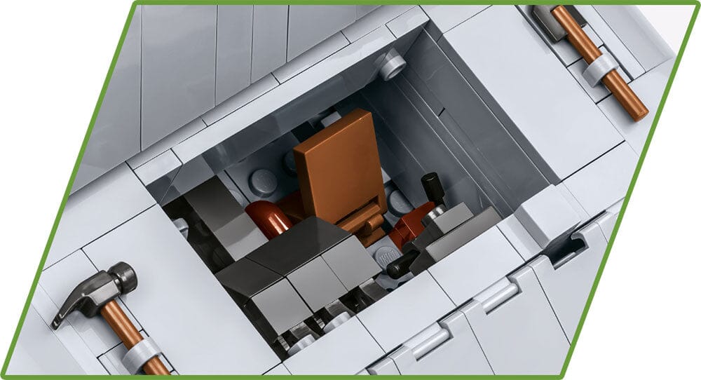 Experience the sheer power of the Panzerkampfwagen E-100 with this extraordinary model, meticulously constructed at a large 1:28 scale using 1511 elements. This impressive tank measures 37 cm in length, allowing for an intricately designed interior in both the turret and the vehicle itself. The model boasts several exciting features, including access to the service hatch, which reveals a removable engine. The turret can rotate, the cannon is movable, and the hatches for the crew are functional. The tank's tracks are also fully operational. To add to the excitement, the set includes a captivating figure of a tanker with a unique print on the back. Constructing this colossal model will provide hours of thrilling engagement and make for an awe-inspiring centerpiece in your collection.