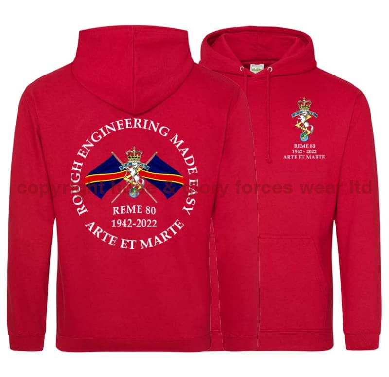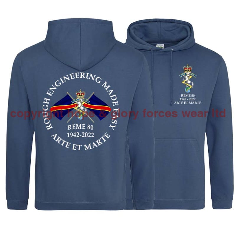 REME 80 Commemorative Double Side Printed Hoodie is made to order in UK and printed with superior Direct to Garment Print (DTG) Print Technology.
