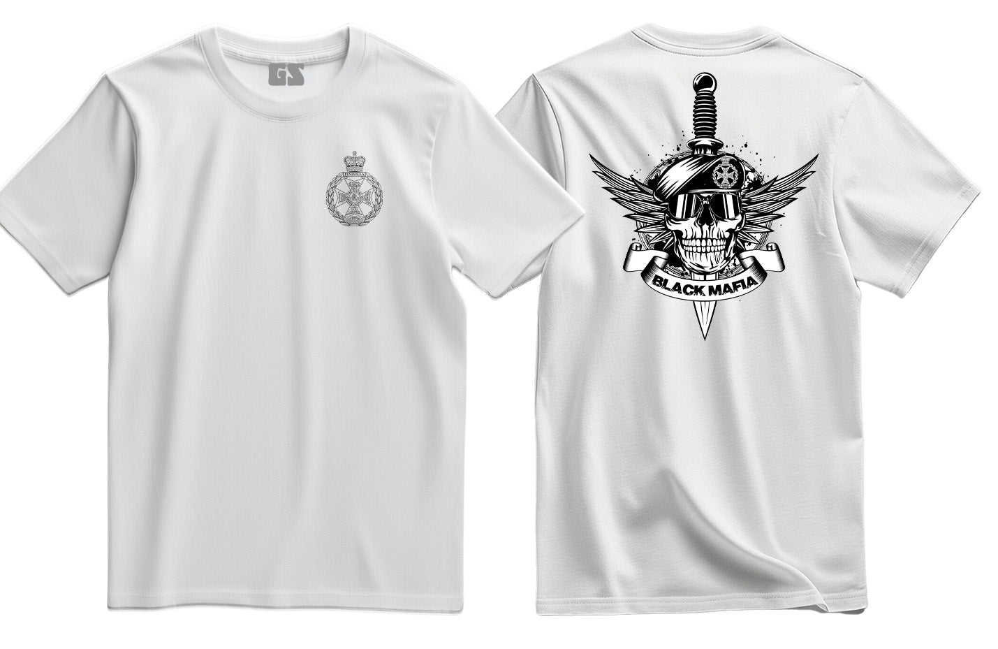 Royal Green Jackets Black Mafia Double Print T-Shirt. We love creating new t shirts and cool designs that you won't find anywhere else. And, we professionally produce all of our cool graphic tees with the latest Direct to garment print process.  Thanks for checking out our shirts!