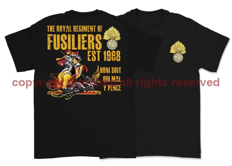 Royal Regiment Of Fusiliers Double Print T-Shirt. We love creating new t shirts and cool designs that you won't find anywhere else. And, we professionally produce all of our cool graphic tees with the latest Direct to garment print process. Thanks for checking out our shirts!