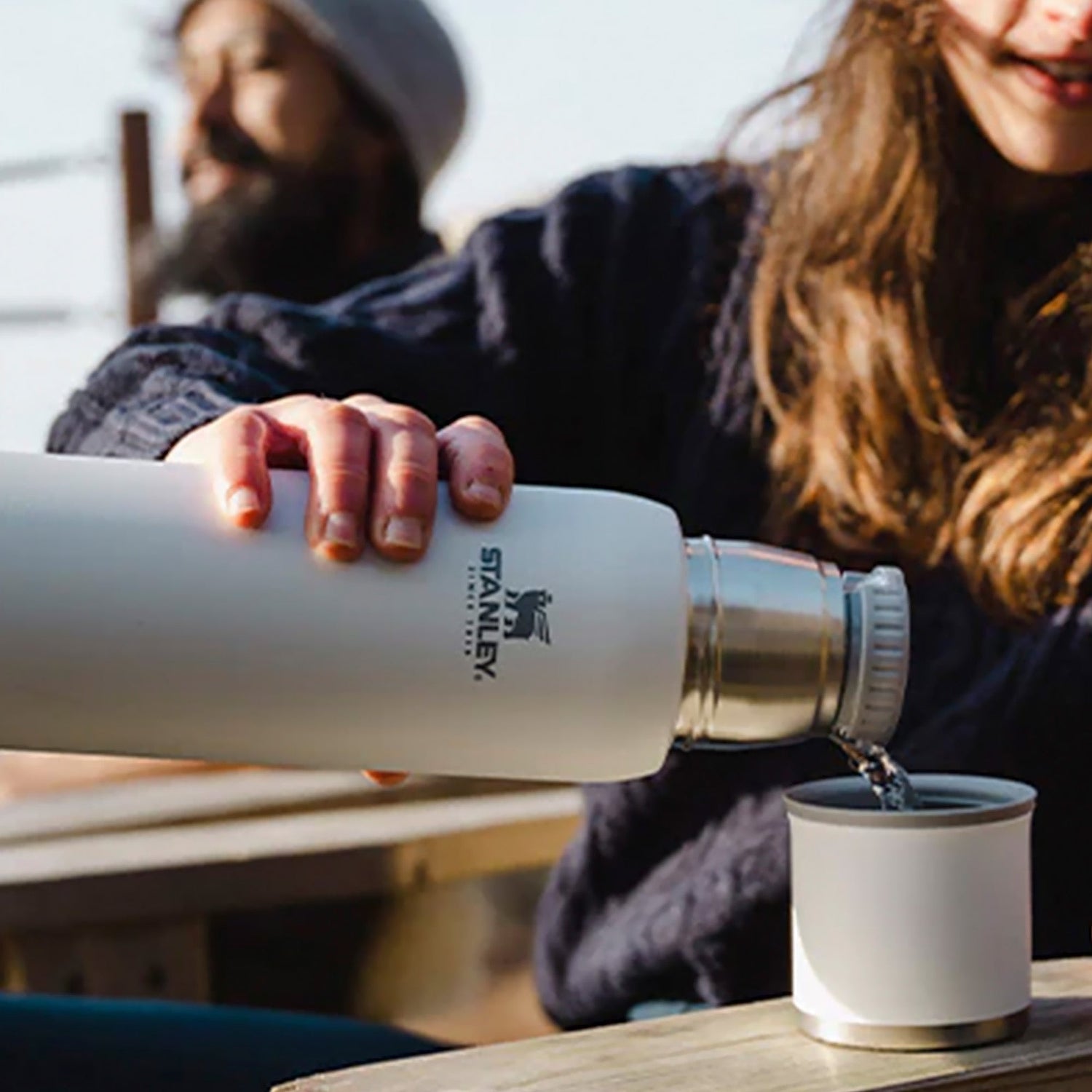 Thanks to Stanley’s double-wall vacuum insulation, keep your favorite drinks hot for 25 hours or cold for 27 hours. Sip comfortably and stylishly from the insulated, stainless steel lid that doubles as a cup, enhancing your on-the-go drinking experience .