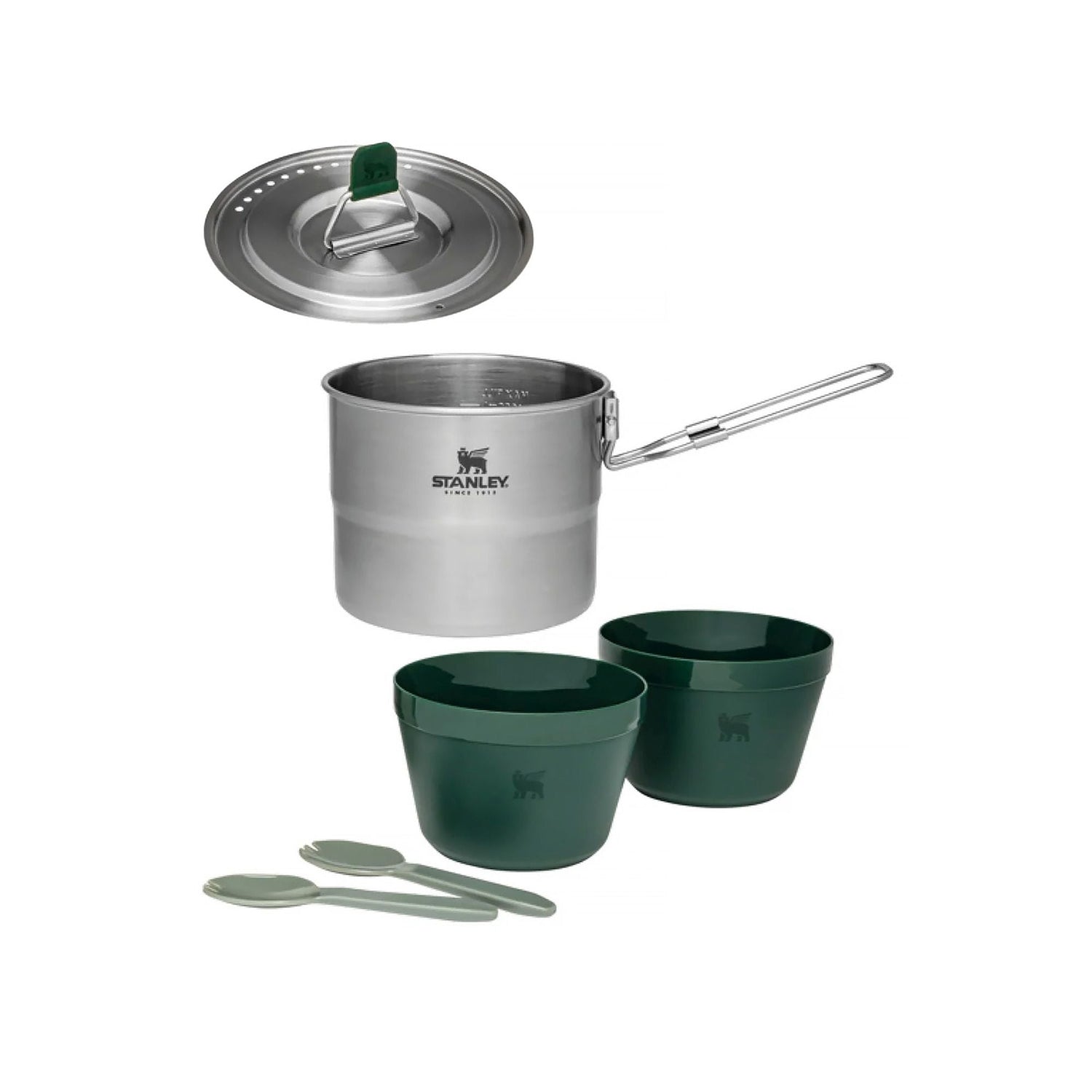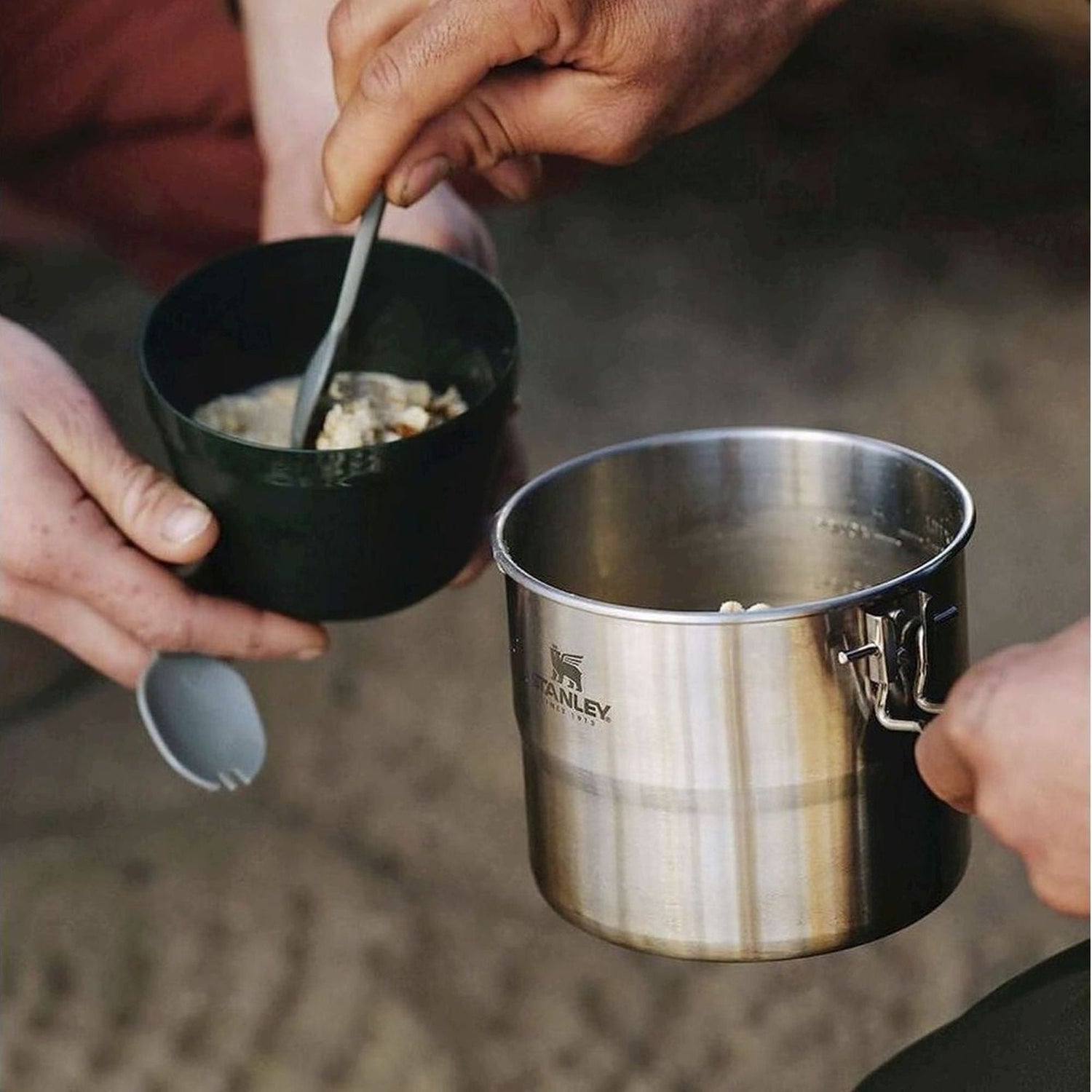 Indulge in delicious hot meals straight from the campfire or camp stove with the Stanley Adventure Stainless Steel Cook Set for Two. This 6-piece cook set is meticulously designed to facilitate culinary adventures for two in the great outdoors. Crafted from durable 18/8 stainless steel and certified BPA-free, this cook set ensures both safety and longevity.